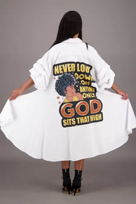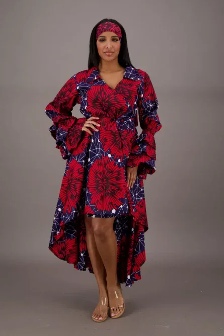 0005 - Denim Hi-Lo Ruffle Sleeve Dress