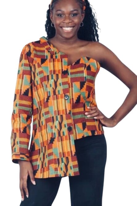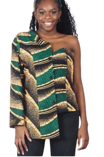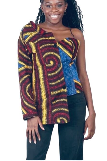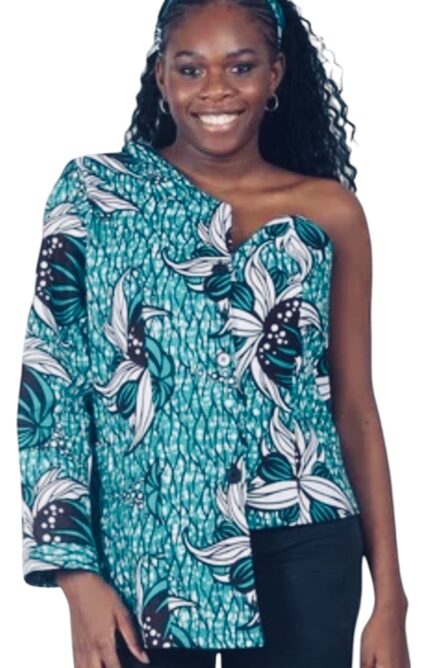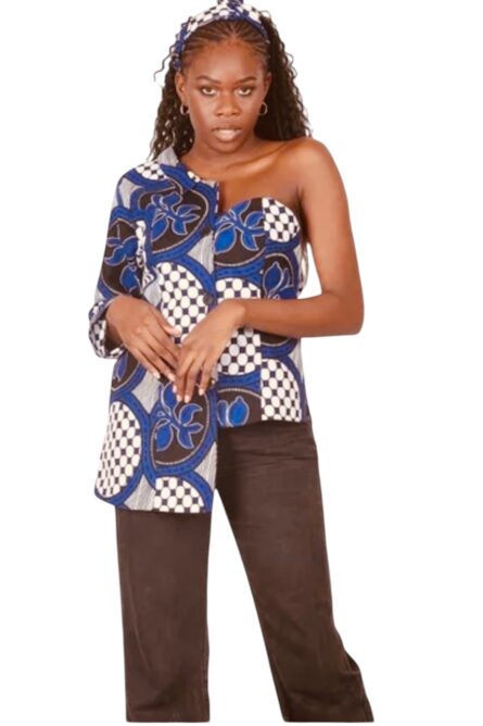 0090 - Indigo Remix One-Sleeve Ankara Top