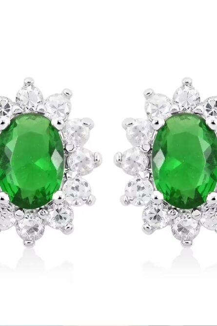 73 - Simulated Emerald Sunburst Stud Earrings