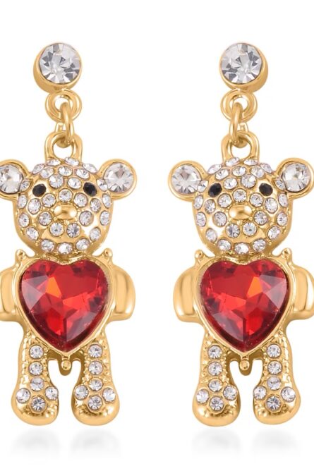 71 - Red Heart Teddy Bear Crystal Dangle Earrings