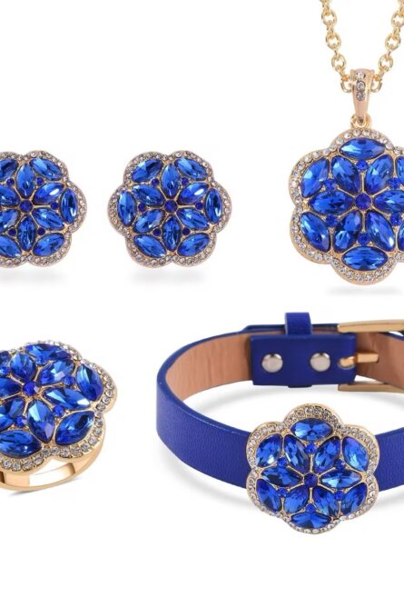 48 - Sapphire Blue Austrian Crystal Floral Jewelry Set – 4