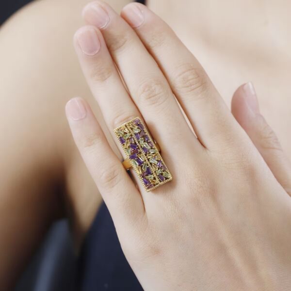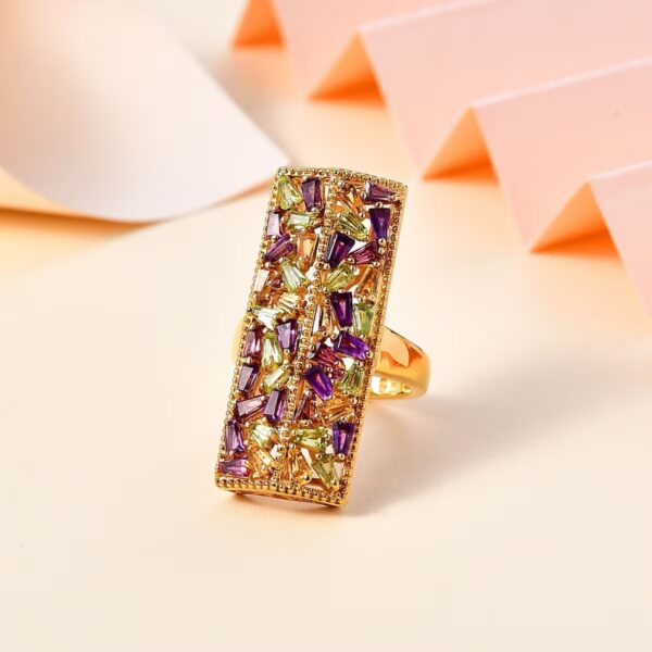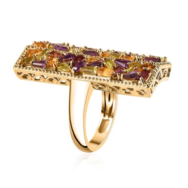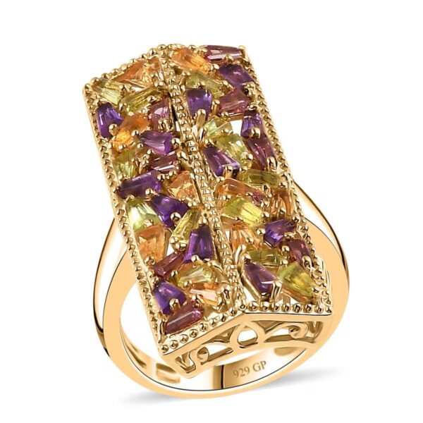 Multi-Gemstone Art Deco Panel | 18K Gold Vermeil Over Sterling Silver | 2.50 ctw | Size 8