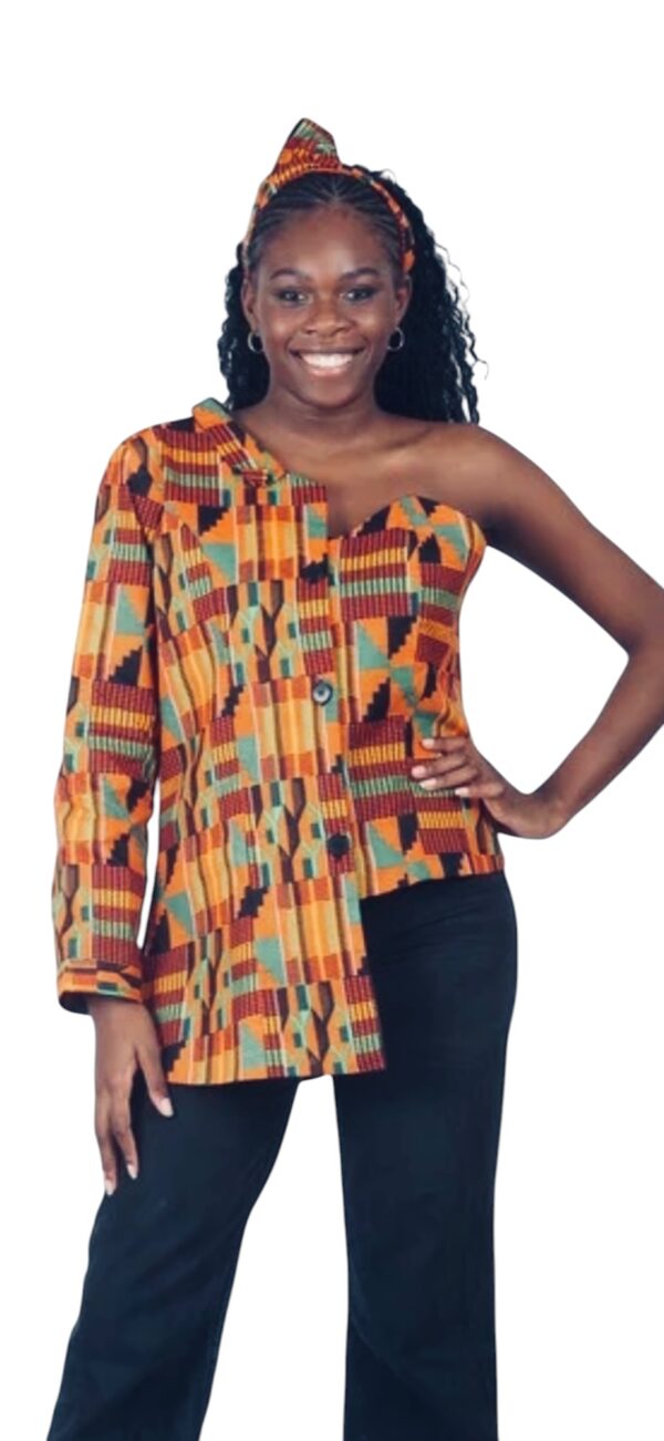 One-Sleeve Ankara Top – Royal Kente Remix Top