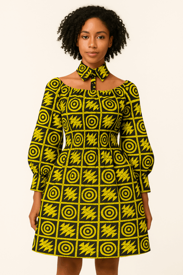 0024 – Midnight Sun Geo Ankara Dress