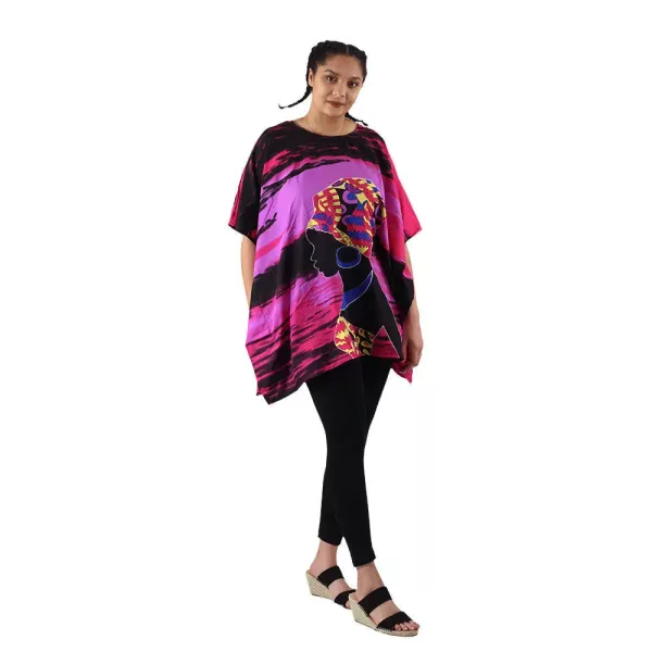 Designed with a breezy sharkbite hem, loose fit, and relaxed short sleeves, this kaftan flatters beautifully on women of all sizes—from Small to 2XL. The lightweight polyester fabric drapes effortlessly and pairs perfectly with your favorite leggings, jeans, or shorts for an easy, chic look.