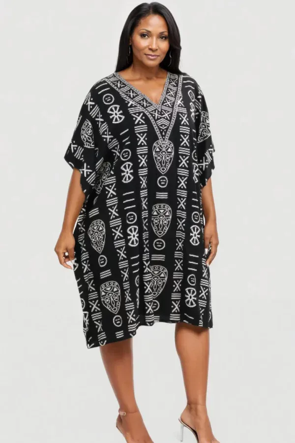 Ebony & Ivory Tribal Kaftan (fits sizes 1Xl – 2Xl)
