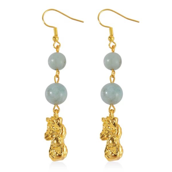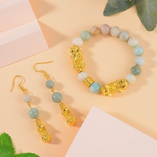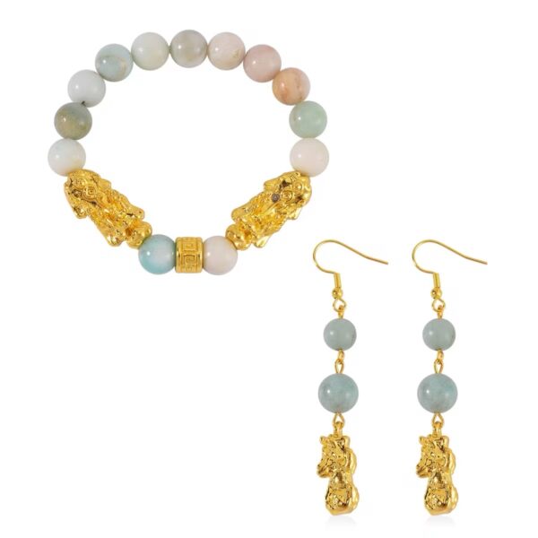 Multi-Color Amazonite Pixiu Bracelet & Earrings Set – Feng Shui Gemstone Jewelry | Goldtone