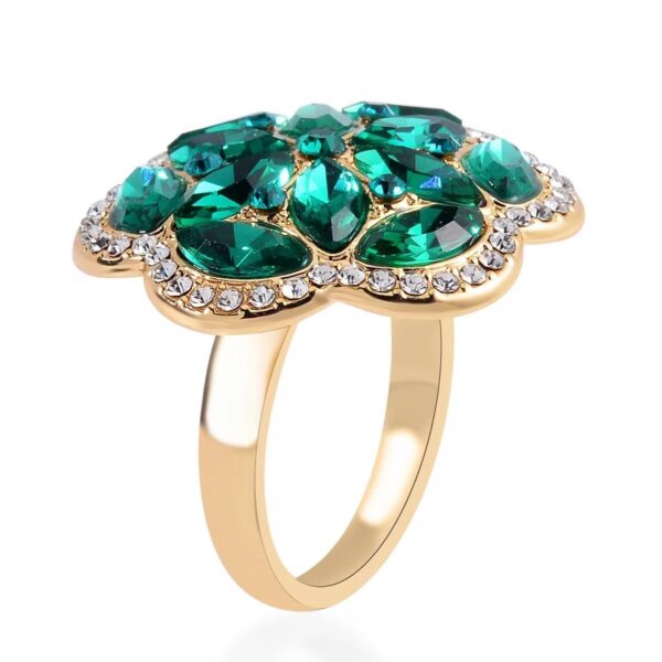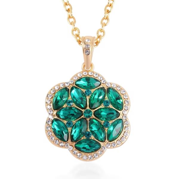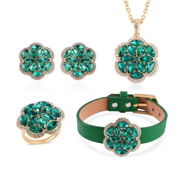 Add bold elegance to your jewelry collection with this 5-piece Austrian crystal floral jewelry set. Designed with radiant green and white stones in a sculpted marquise-cut bloom motif, this coordinated statement set delivers brilliance, structure, and modern style.