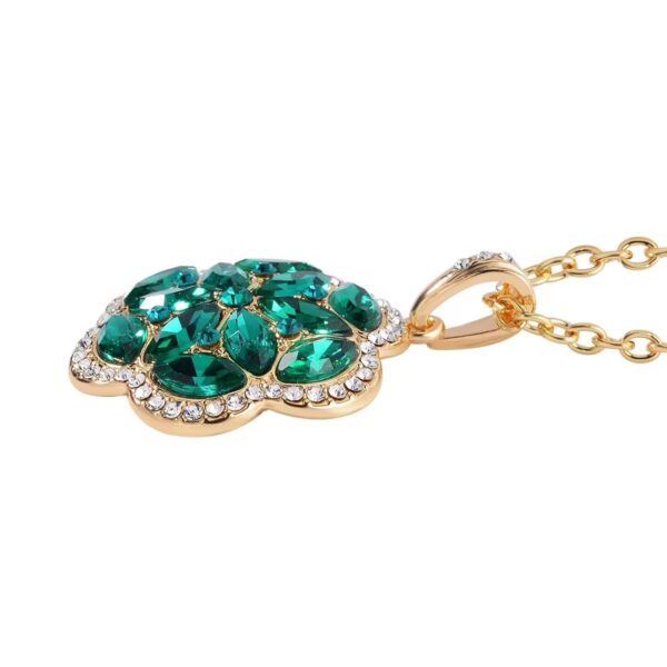 💚 Green & White Austrian Crystal Floral Jewelry Set – 5-Piece Statement Collection in Goldtone