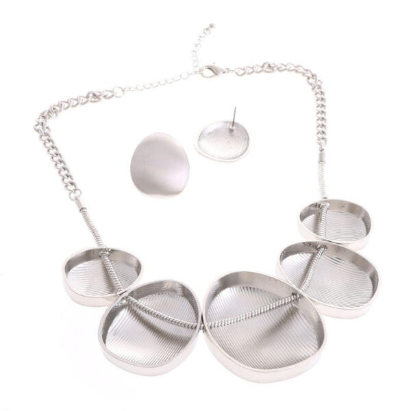 14 – Sculpted Silver Pebble Statement Necklace & Earring Set