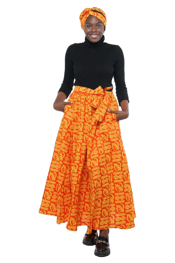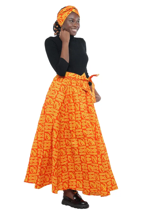 Golden Ember African Maxi Skirt with Headwrap – Fits S to 1XL
