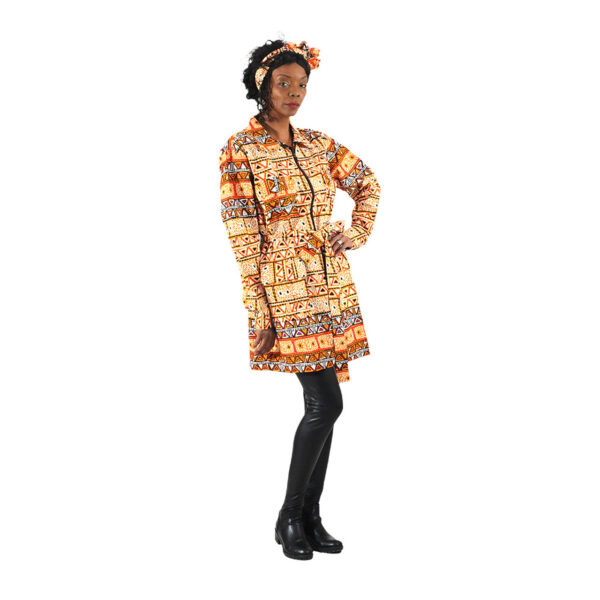 African Print Zipper Jacket with Belt & Matching Headwrap