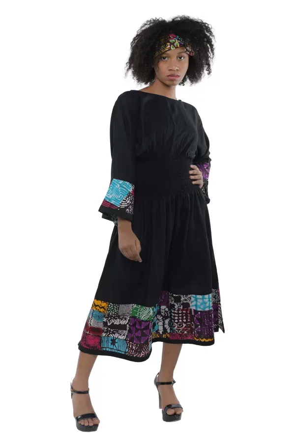 0012 – Noir Mosaic African Trim Midi Dress