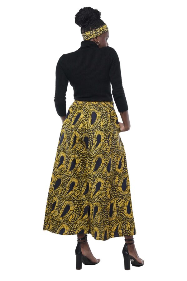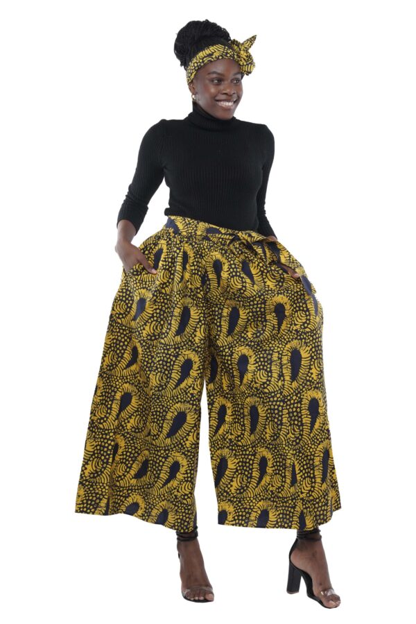 Brighten up any room with the radiant beauty of our Golden Bloom Palazzo Set. Featuring bold yellow and black Ankara print in an eye-catching abstract floral design, this wide-leg pant set is a celebration of African style and feminine flair. The full silhouette flows with ease, offering statement-making comfort for special occasions or standout everyday looks.
