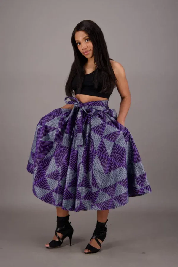 Add a touch of elegance, culture, and modern flair to your wardrobe with the Purple Prism Ankara Skirt.