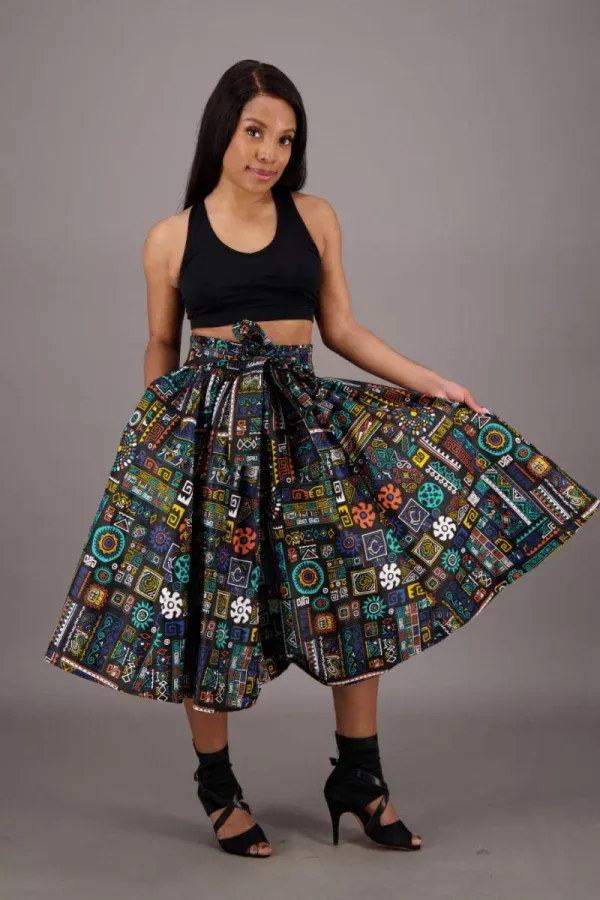 This bold tribal print African skirt offers cultural style, comfort, and versatility for any occasion.