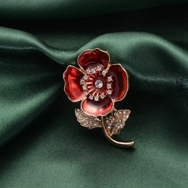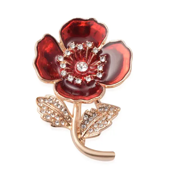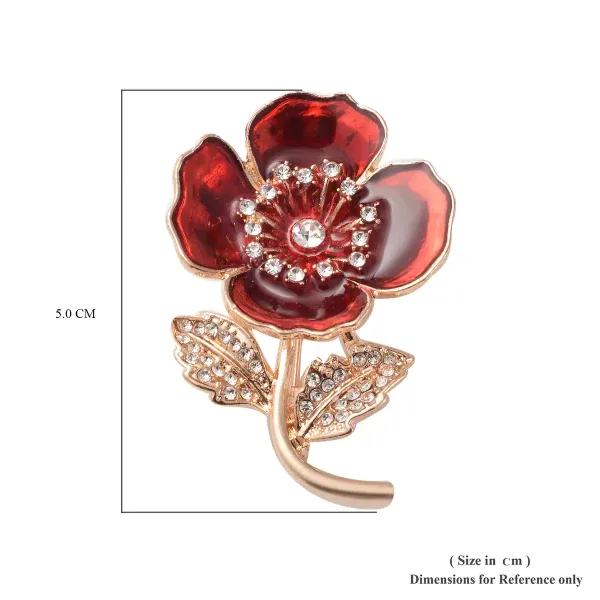 Add a refined floral statement to your collection with this Rose Gold Austrian Crystal Brooch. Designed in an elegant flower silhouette, this piece features radiant crystals paired with rich red enamel accents for a striking contrast.