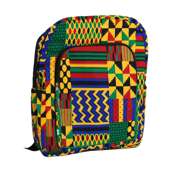 Show off your roots in style with our Heritage Pulse African Backpack! Handcrafted in Kenya, this eye-catching bag features bold kente-inspired prints in vibrant yellow, red, green, blue, and black—a wearable celebration of African heritage.