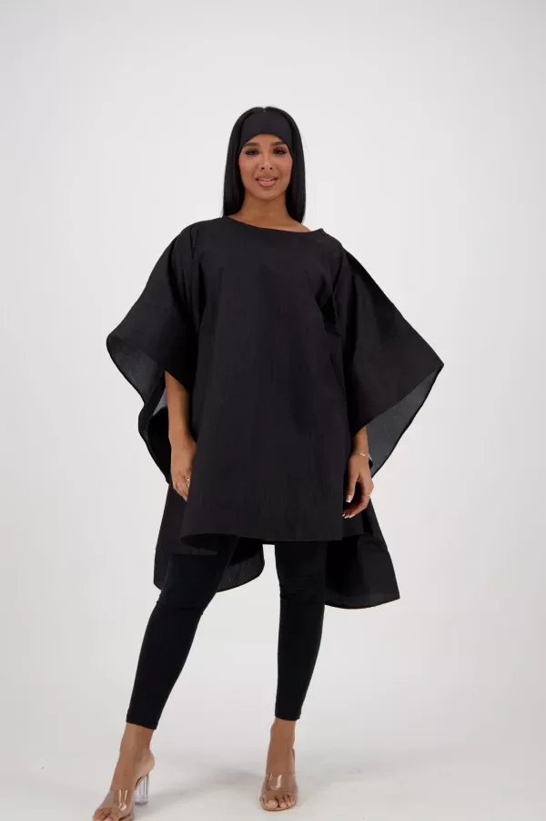 Black African Dress with Butterfly Sleeves – Elegant & Versatile Fits Sizes (Small – Large)