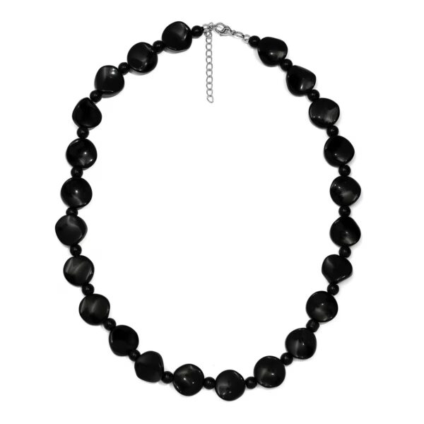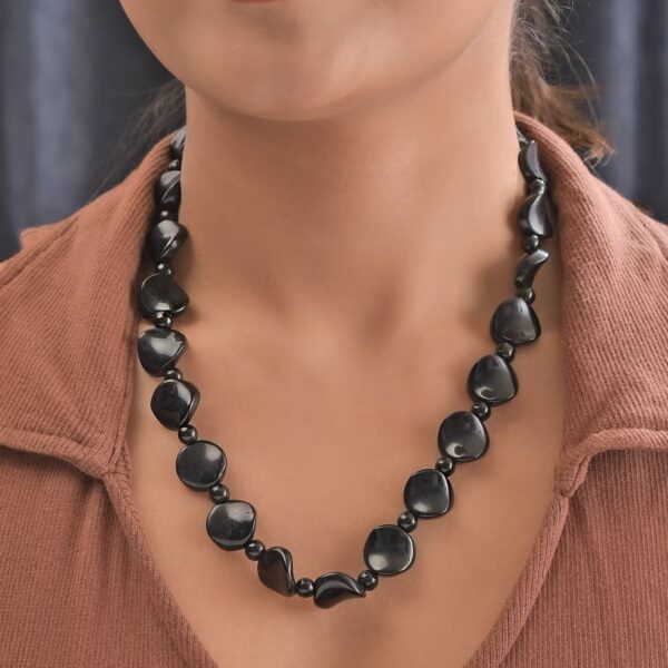 Black Agate Bead Necklace – 20 Inch Stainless Steel | 287.05 ctw