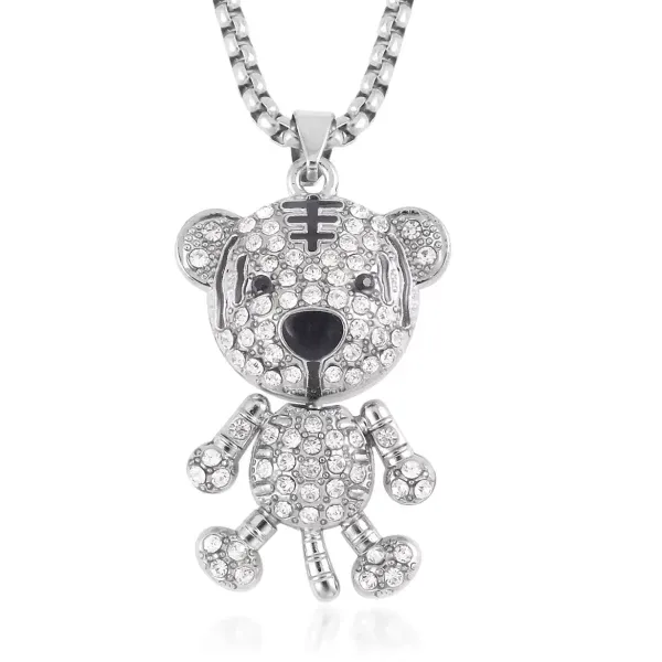 Make a bold statement with this black and white Austrian crystal bear pendant necklace. This eye-catching piece features sparkling Austrian crystals set in a detailed bear design. The long 28-inch stainless steel chain makes it perfect for layering or wearing alone.