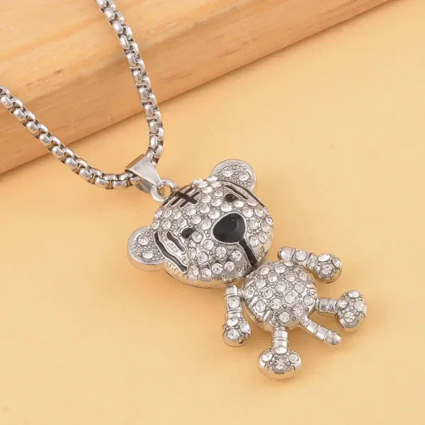 This black and white crystal bear necklace is ideal for women who love bold statement jewelry with sparkle and personality.