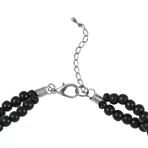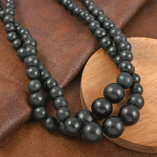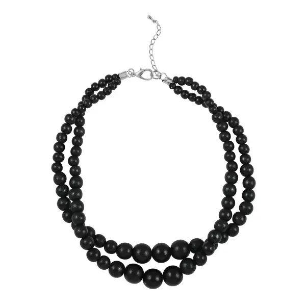 Black Wooden Beaded Double Row Necklace – 18–20 Inches | Stainless Steel Clasp