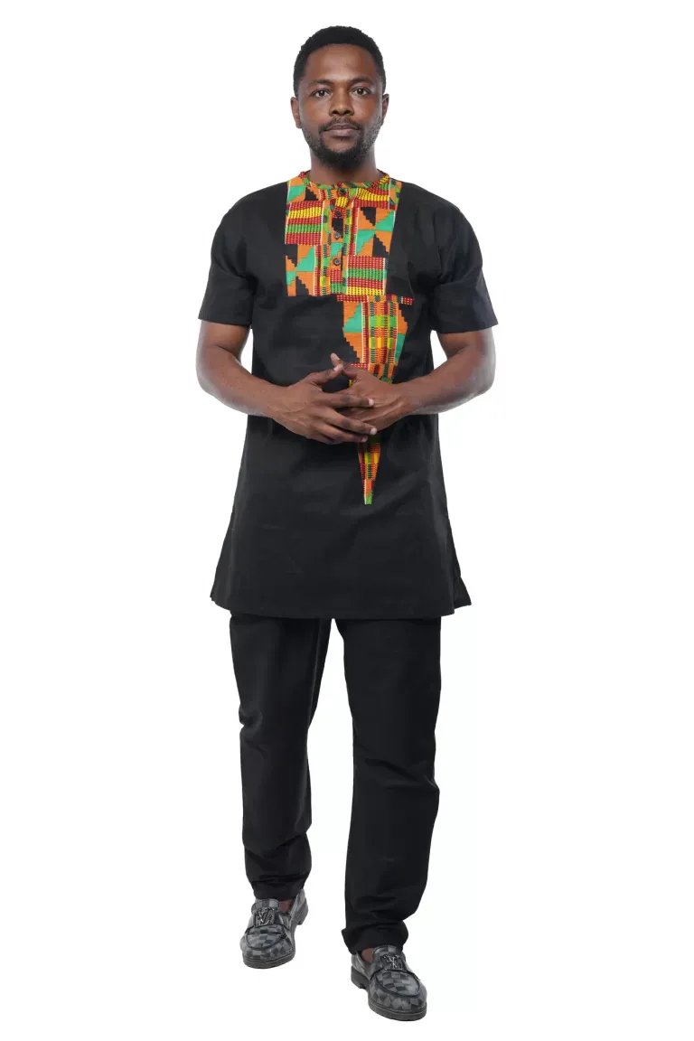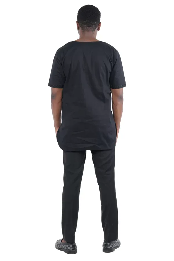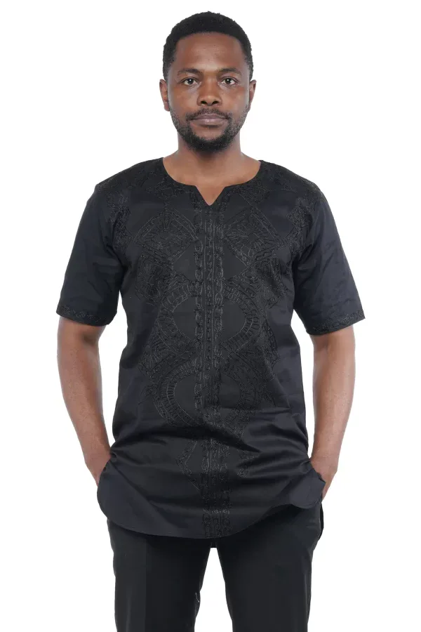 Black Embroidered Cotton Shirt for Men – Premium Short Sleeve African Top 💎