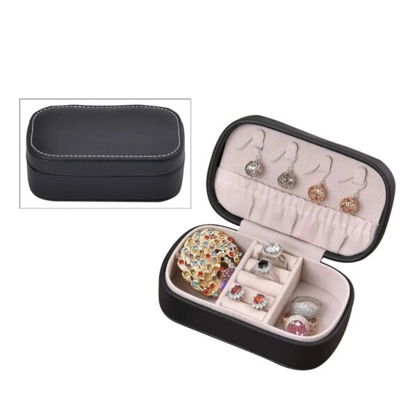 Black Faux Leather Oval Travel Jewelry Box