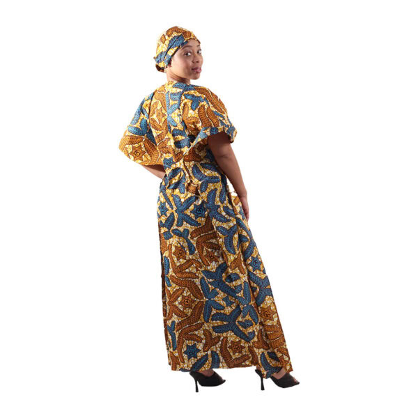 Designed with a cinched drawstring waist for shape and comfort, it offers a flattering silhouette that moves with you. The breathable cotton fabric and included matching headwrap make this a go-to look for everything from brunch to laid-back gatherings.