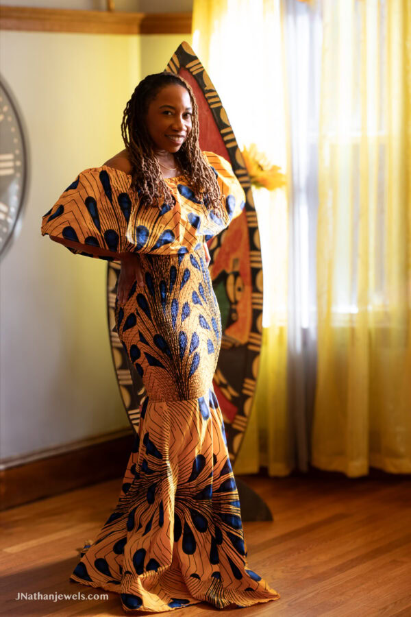 0011 – Royal Feather African Print Gown