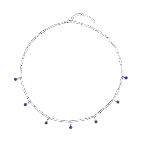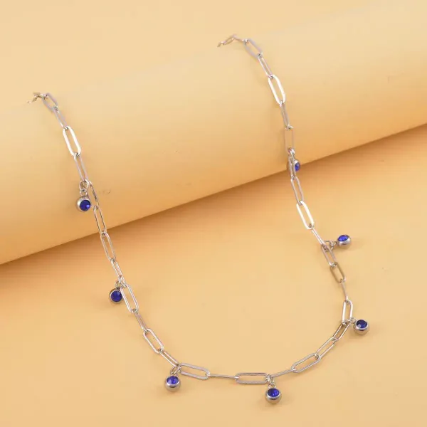 24 – Blue Austrian Crystal Paper Clip Chain Station Necklace