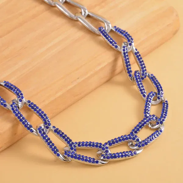 24 – Blue Austrian Crystal Paperclip Link Necklace