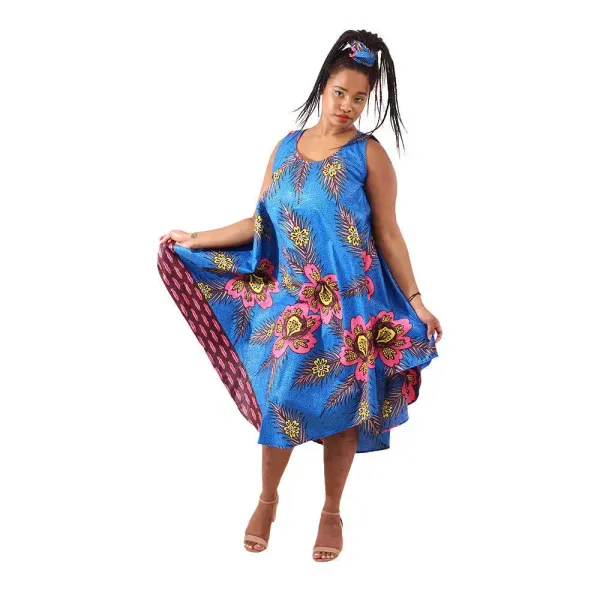 Perfect for beach getaways, brunch dates, or sunny strolls, it’s light, stylish, and designed for comfort. A matching headwrap completes the look with a dash of Afro-inspired flair.