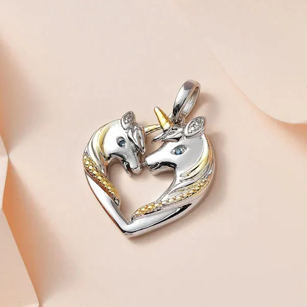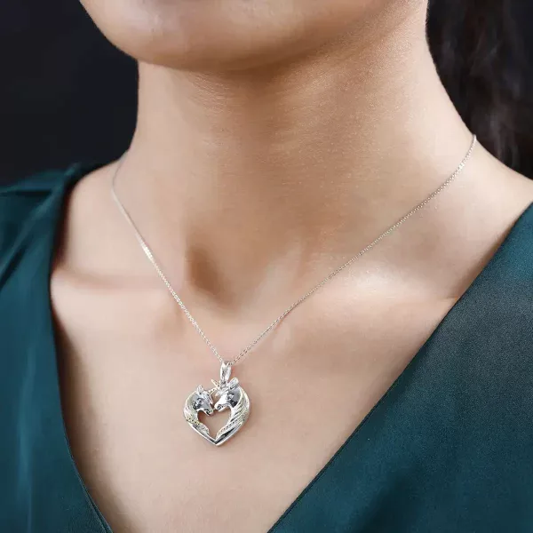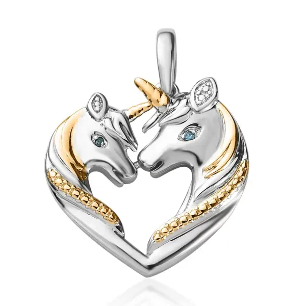Show your love for horses with this blue diamond accent horse pendant necklace. Two sculpted horse heads form a heart shape, creating a design that symbolizes unity and strength. Because of its dual-tone finish, the pendant has depth, contrast, and shine.