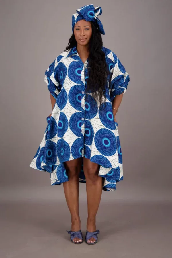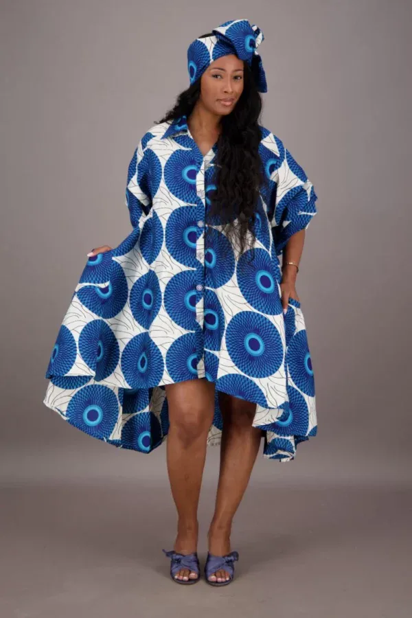 0009 – Blue Circle Hi-Lo African Dress