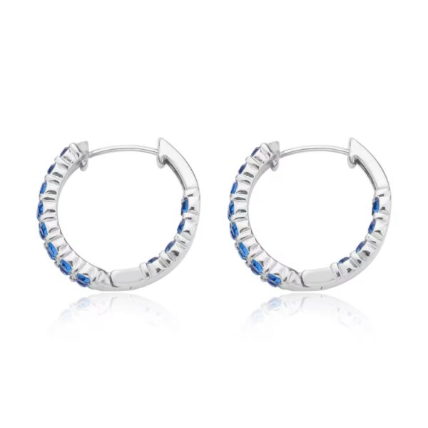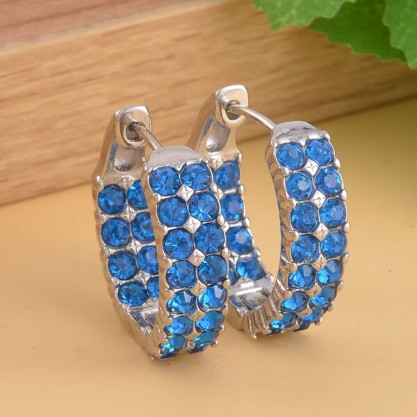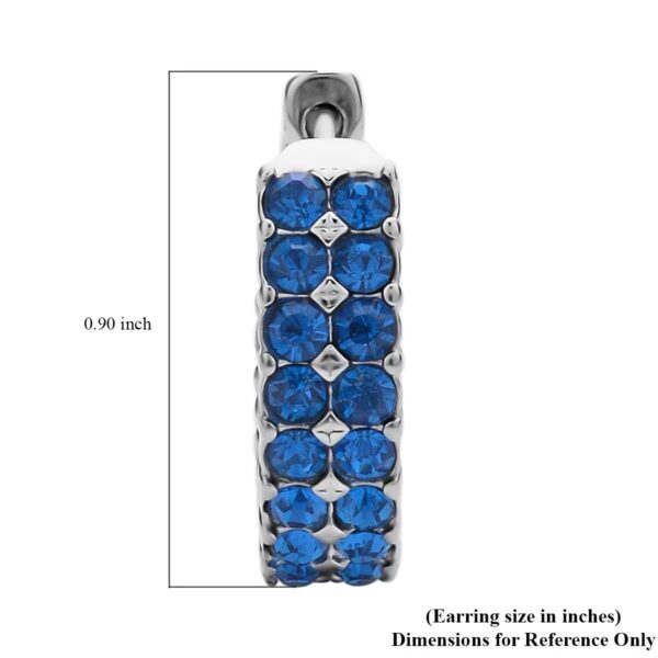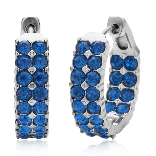 Make a confident statement with these Blue Austrian Crystal Inside-Out Hoop Earrings, designed to deliver radiant sparkle from every angle. Featuring 48 vivid blue round-cut Austrian crystals set along the inside and outside of each hoop, this design creates a full 360° shimmer effect that catches light beautifully.