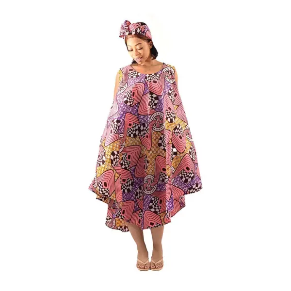The flowing asymmetrical hemline and flattering scoop neckline make it perfect for festivals, brunch dates, or weekend escapes. Comes complete with a matching headwrap for an effortlessly coordinated look.