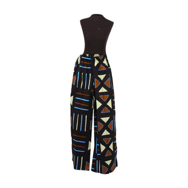 Step into bold tradition with our Desert Clay Mudcloth Palazzo Pants. Inspired by classic mudcloth symbols, this wide-leg silhouette features earthy terracotta tones, soft ivory, and hints of sky blue on a deep black base. The pattern evokes heritage with a modern twist, bringing movement and meaning to your every step.