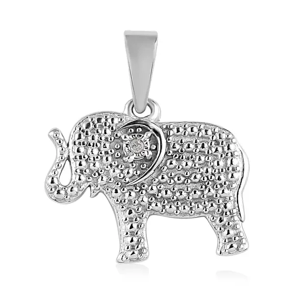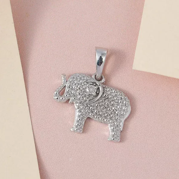 🐘 Diamond Accent Elephant Pendant – Platinum Over Sterling Silver