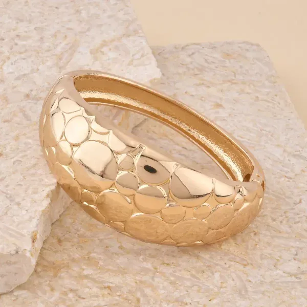 32 – “Golden Echo” Sculpted Dome Bangle Bracelet