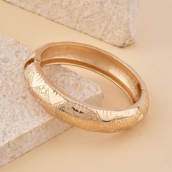 32 – Golden Echo Engraved Dome Bangle – Goldtone Brass