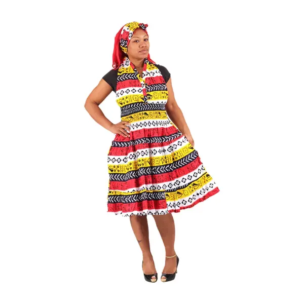 Crafted from breathable 100% cotton, it’s perfect for sunny days, weekend outings, or casual gatherings. Complete with a matching headwrap, this dress makes it easy to create a put-together look with minimal effort.