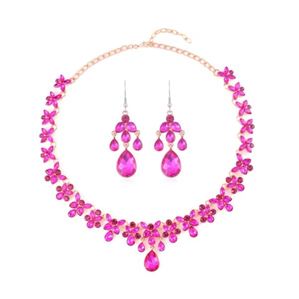 Fuchsia Austrian Crystal Floral Necklace & Dangle Earrings Set – Rosetone | 20–22 Inches