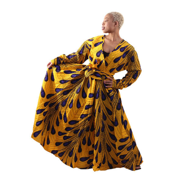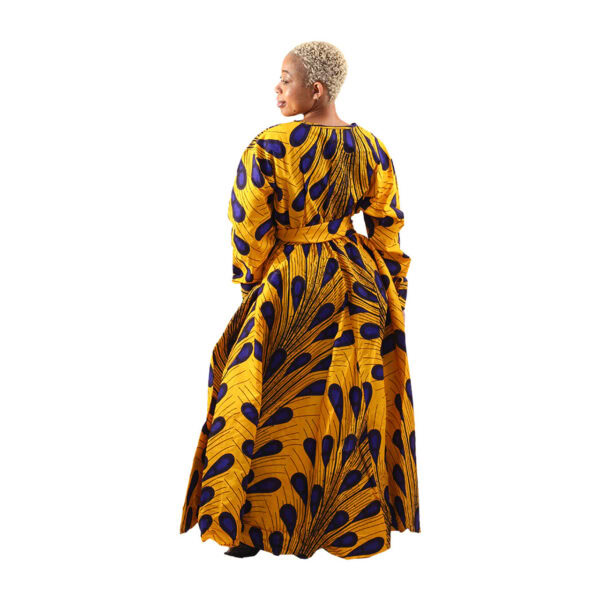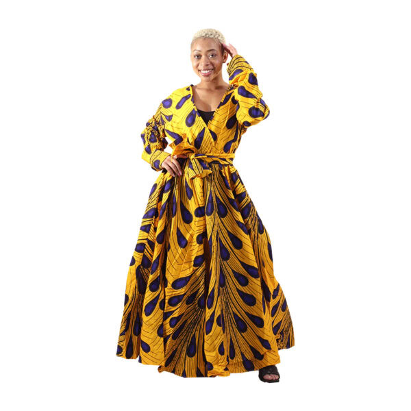 Thoughtfully finished with long sleeves and buttoned cuffs, this dress transitions seamlessly from cultural events to casual elegance. It includes a matching headwrap to complete your look with head-to-toe coordination.