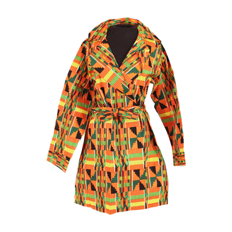 Neutral Base, Loud Legacy: Gray canvas lets the Kente shine