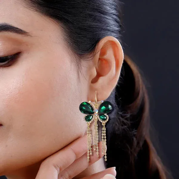 72 – Emerald Radiance Butterfly Dangle Earrings