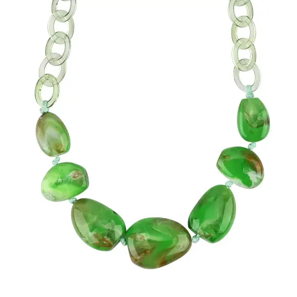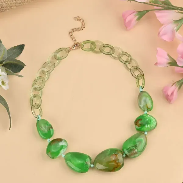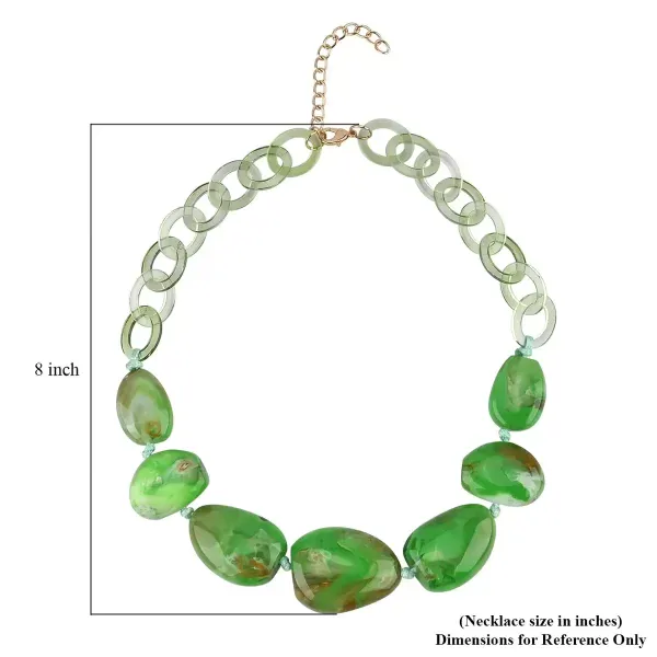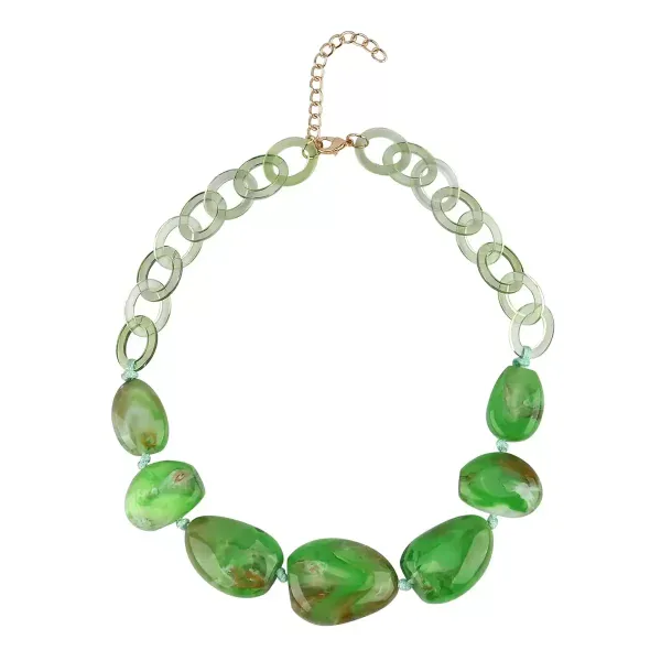 Add vibrant color to your jewelry collection with this green resin statement necklace. Designed with 23 organic-shaped resin stones and a translucent link chain, this piece delivers bold texture with lightweight comfort.