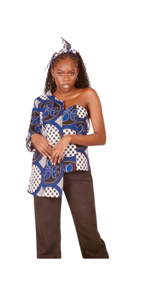 Designed for women who love bold, stylish pieces that celebrate culture. The one-shoulder design adds a modern twist to traditional African fashion. Perfect for pairing with jeans, skirts, or wide-leg pants.