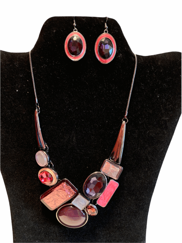 219 – Hematite & Plum Statement Necklace & Earring Set
